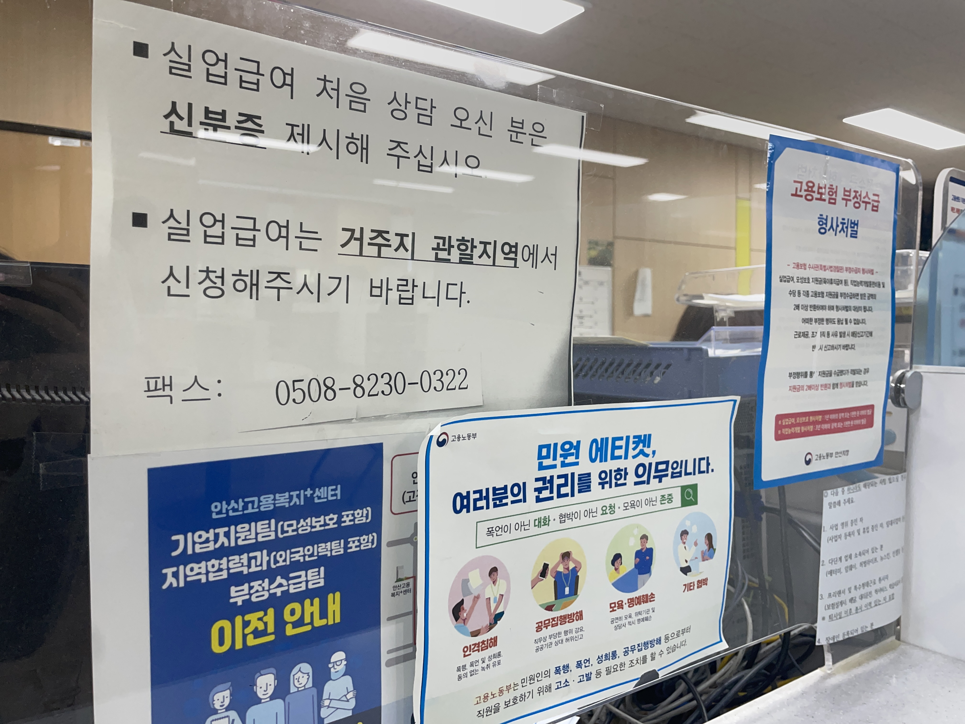 이전 직장 이직확인서 직권 처리 요청서류를 팩스로 보낸 뒤 바로 안산고용복지플러스센터에 방문했습니다.