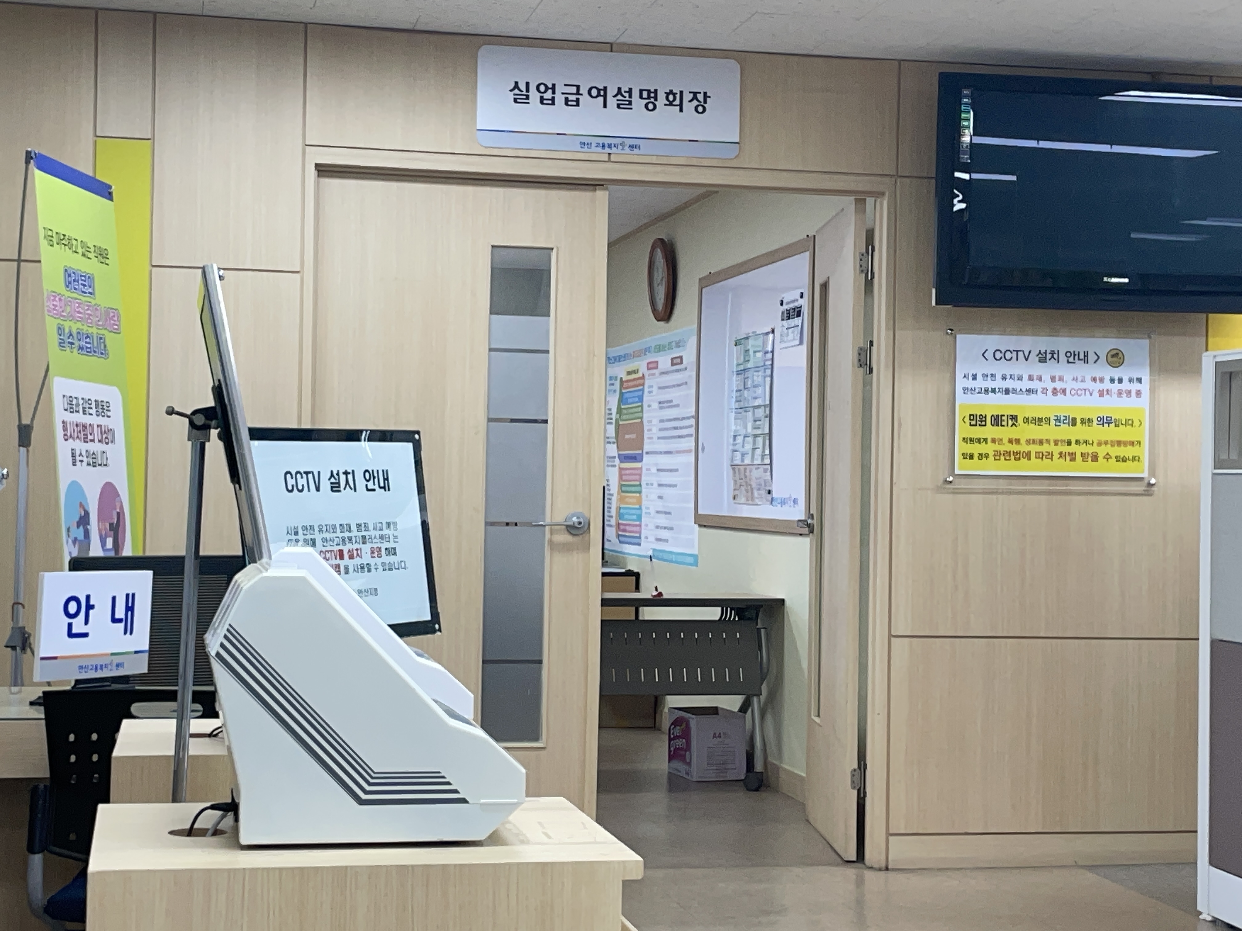 옆 쪽에는 실업급여설명회장이 있었는데요. 온라인으로 수급자격 신청자 교육을 받지 못하신 분들은 이 곳에서 받을 수 있어요. 교육 시간은 담당자분께서 따로 안내해 주십니다.