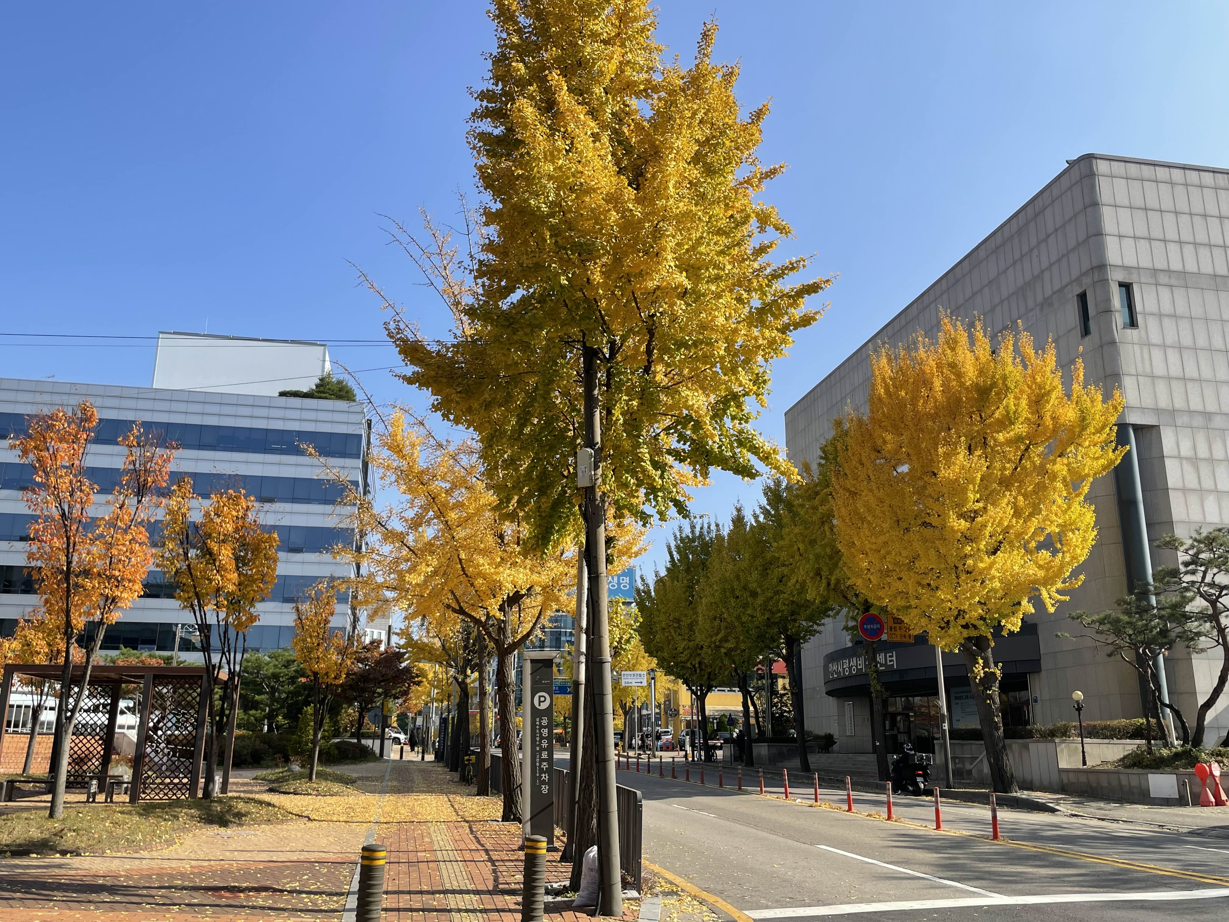 안산고용복지플러스센터에서 실업급여 신청을 마친 뒤 홀가분한 마음으로 돌아가는 길인데요. 집으로 돌아가는 길마저도 예쁜 은행나무를 눈으로 담으며 걸어갈 수 있어서 정말 행복했어요.